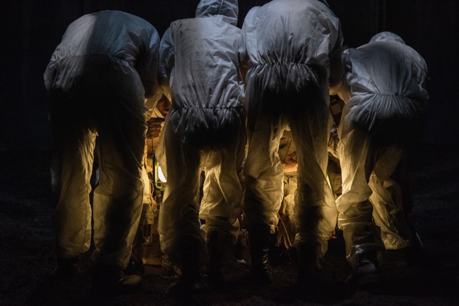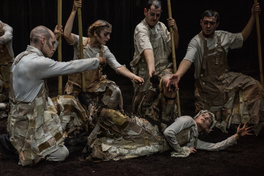 Nach den physisch distanzierten Jahren durch Corona und einer immer noch latenten Gefahr, wird das choreografische Projekt „ Das Feld“ mit einem fast zwanzigköpfigen Team erarbeitet. Zwölf Darsteller*innen schaffen auf dem Boden aus fruchtbarer Erde mitten im Theater ein Raum voller Illusionen und Absurditäten. Das Feld als Manege gefüllt mit Erde. Aus einem Reigen von Geschichten aus der Vorzeit und der verrückten Gegenwart, aus der Begegnung von Lebenden und Toten, von Verwandlungen in Tieren und Objekten entsteht eine eigene Realität, die keiner Zeit und Wahrheit zuzuordnen ist.