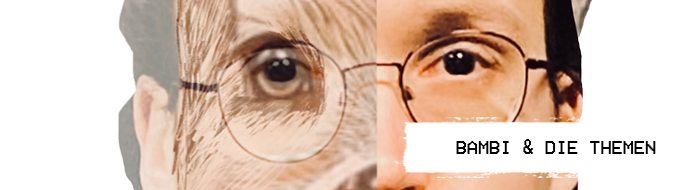 In BAMBI & DIE THEMEN von Bonn Park suchen Bambi, Klopfer und das Stinktier Blume, die nach ihrer traumatischen Flucht aus dem brennenden Wald in einer WG in Saurier-City leben, Antwort auf die ganz großen Fragen der Gegenwart: Wo verdammt steckt der verdammte Sinn? Im Internet, auf der Straße, in Drogen, in der Erinnerung an eine untergegangene Welt?